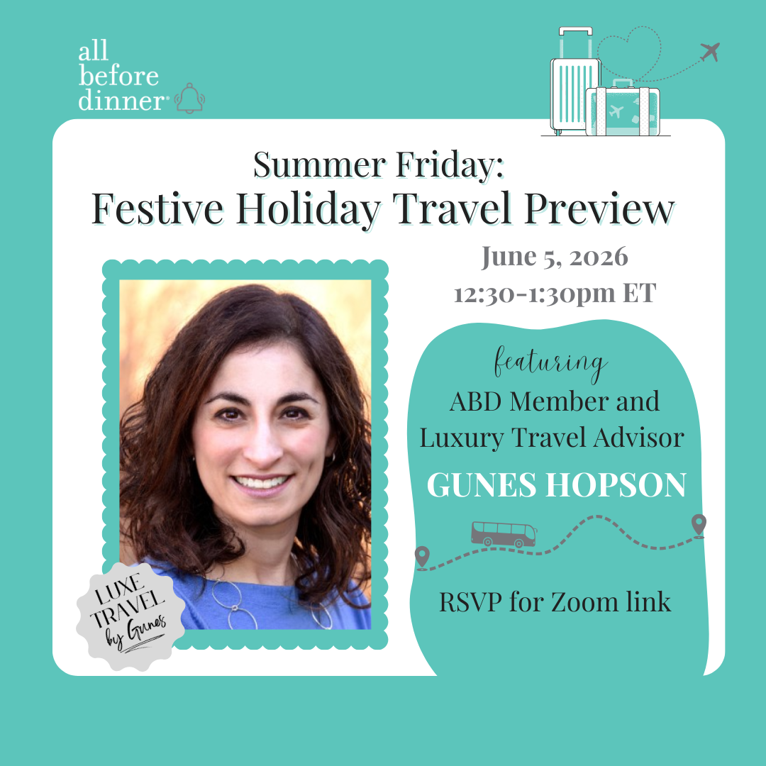 Join ABD Member and Luxury Travel Consultant Gunes Hopson for a presentation on festive holiday travel! RSVP for the Zoom link.