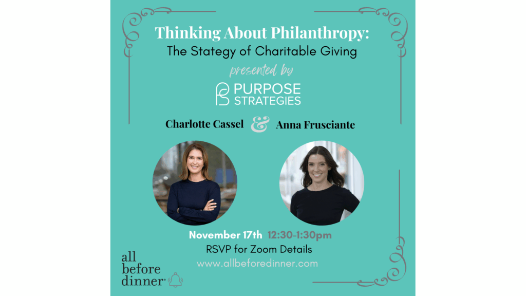 11/17/25 – Thinking About Philanthropy: The Strategy of Charitable Giving presented by Charlotte Cassel and Anna Frusciante of Purpose Strategies